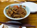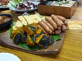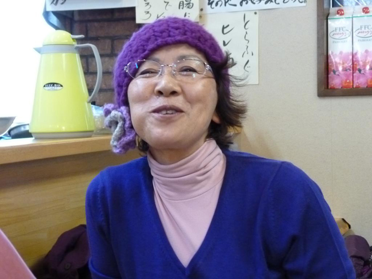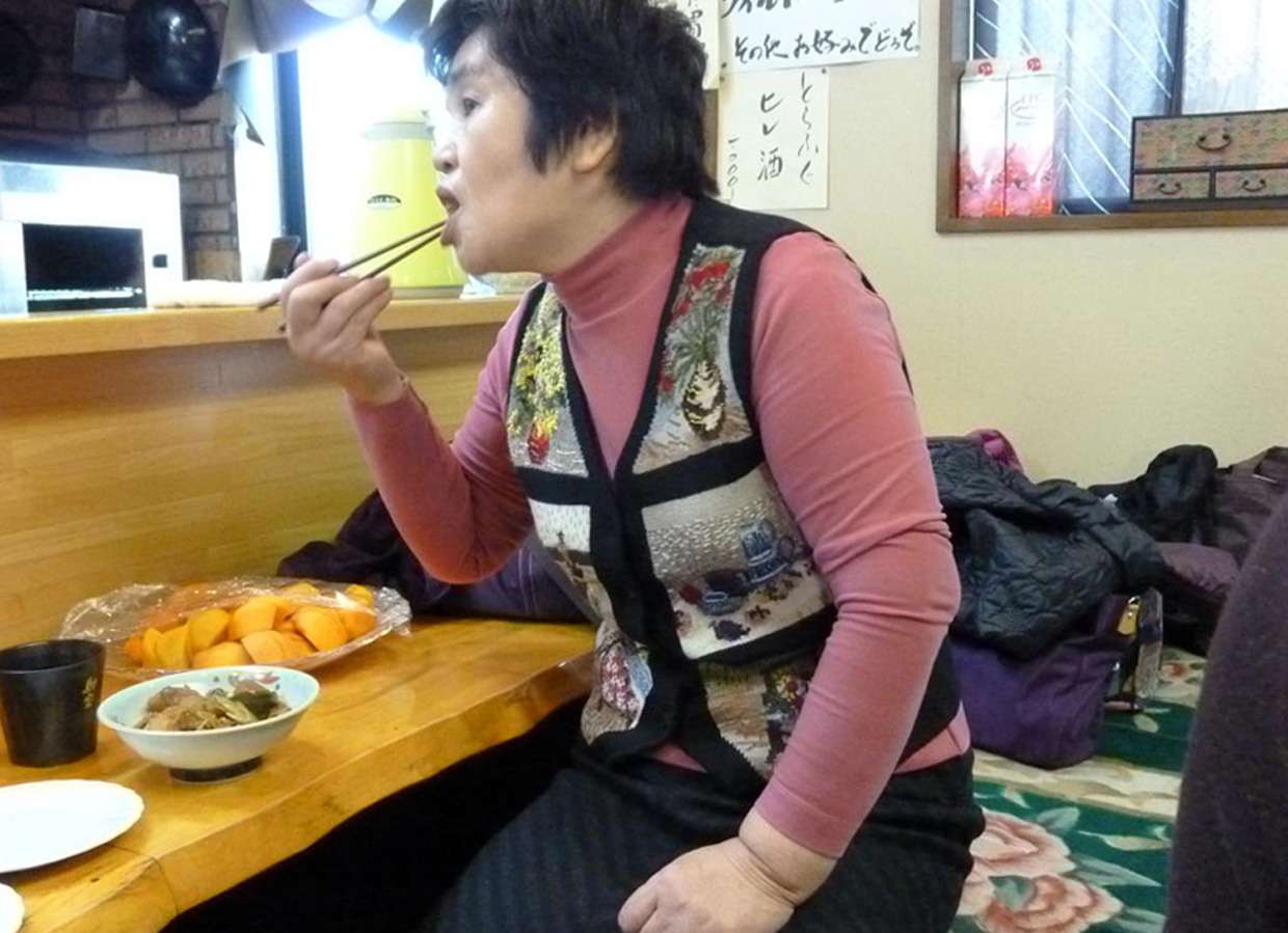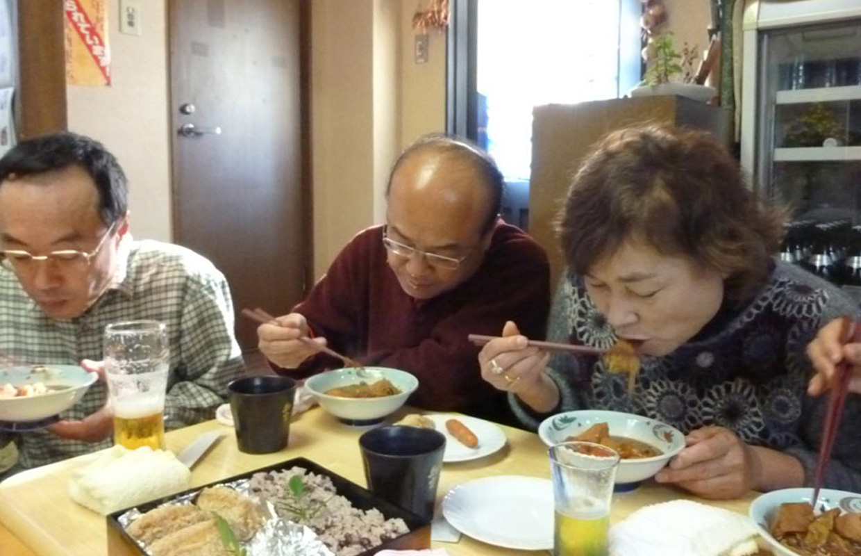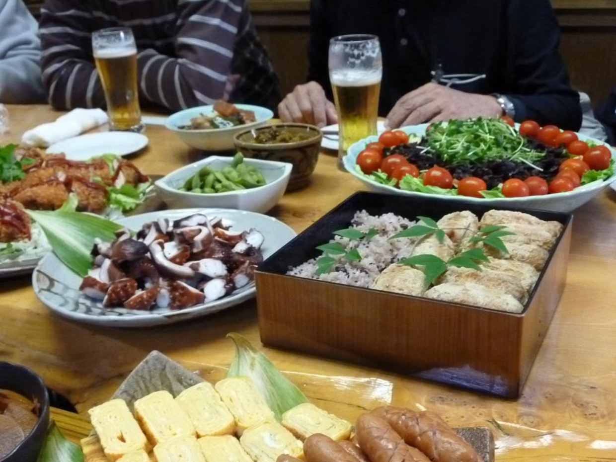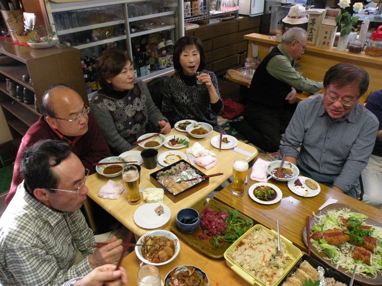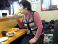 女性軍手料理と生ビールを満喫