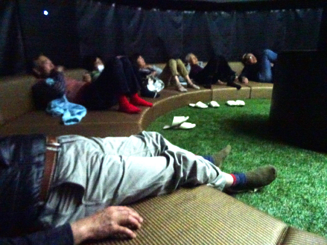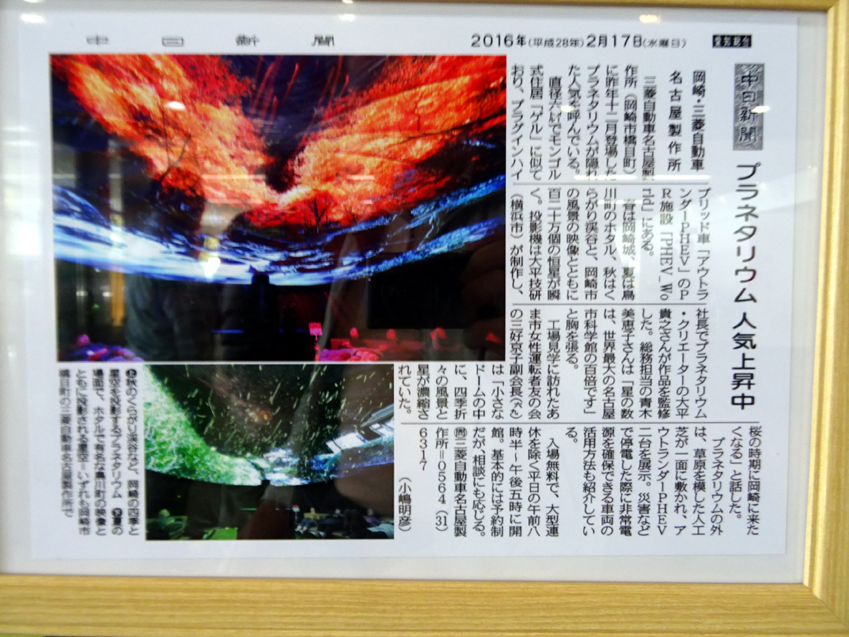ボーリング場は予約が一杯で中止。昼食後、三菱自動車のプラネタリウムを見学しました。(感想は個人差があるため省略)