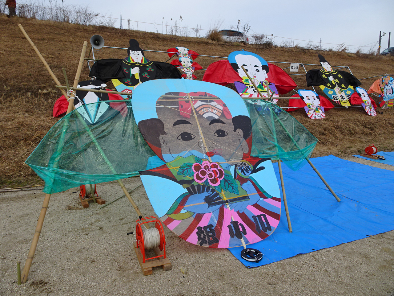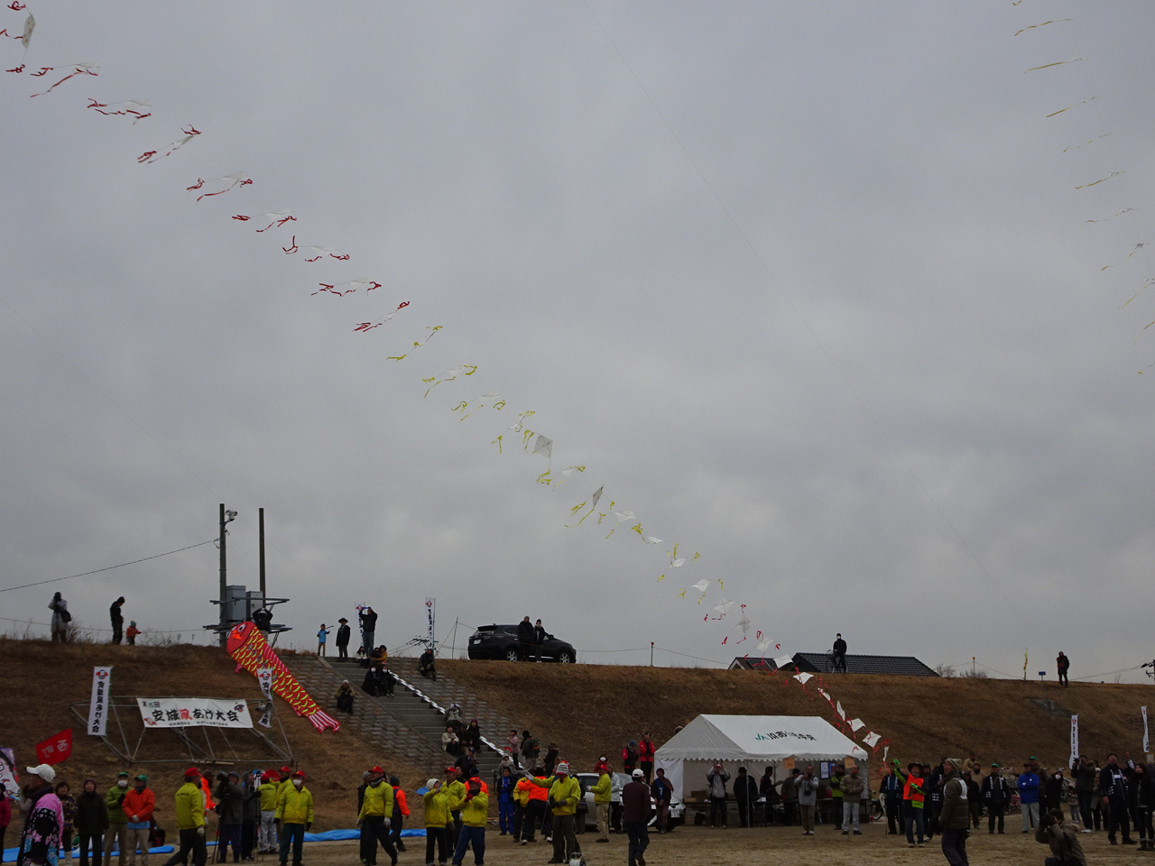 最後に団体・連凧の部の大会。殆ど無風で、広大な競技エリアは霜柱で立入り禁止 | ||||||