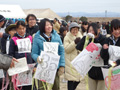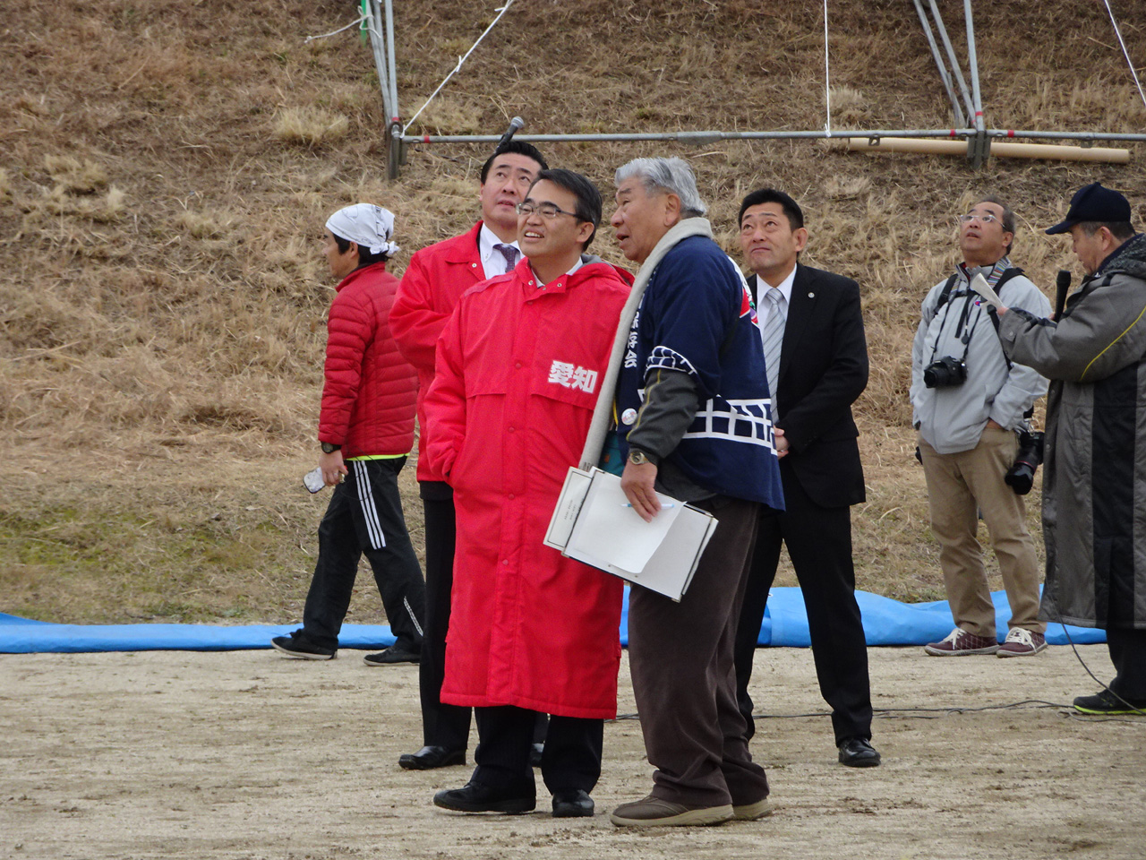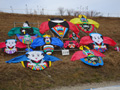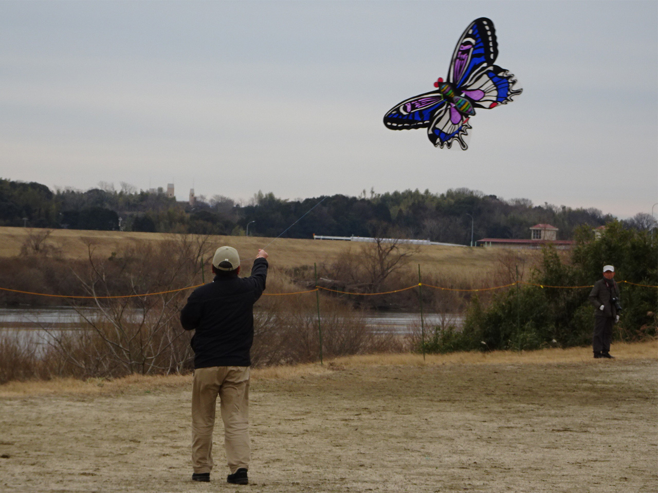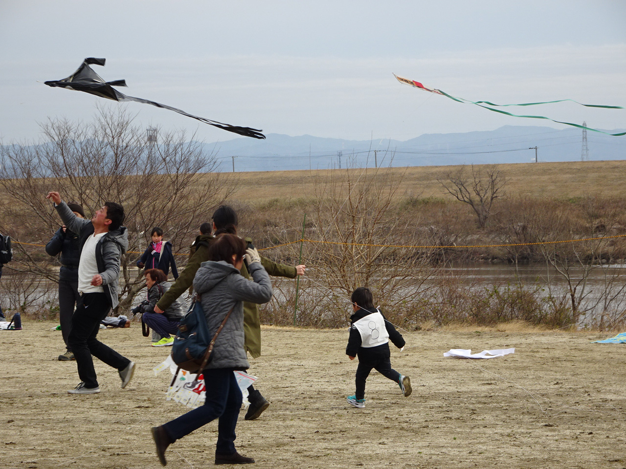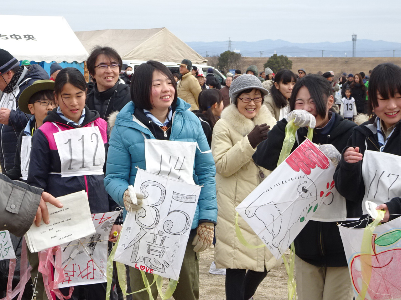 そして、一般の部の大会。霜柱のため限られた狭い場所での凧揚げとなりました。 | ||||||