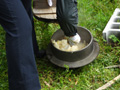 収穫した筍(一回戦)の後処理をし、筍狩りを再開(二回戦)。