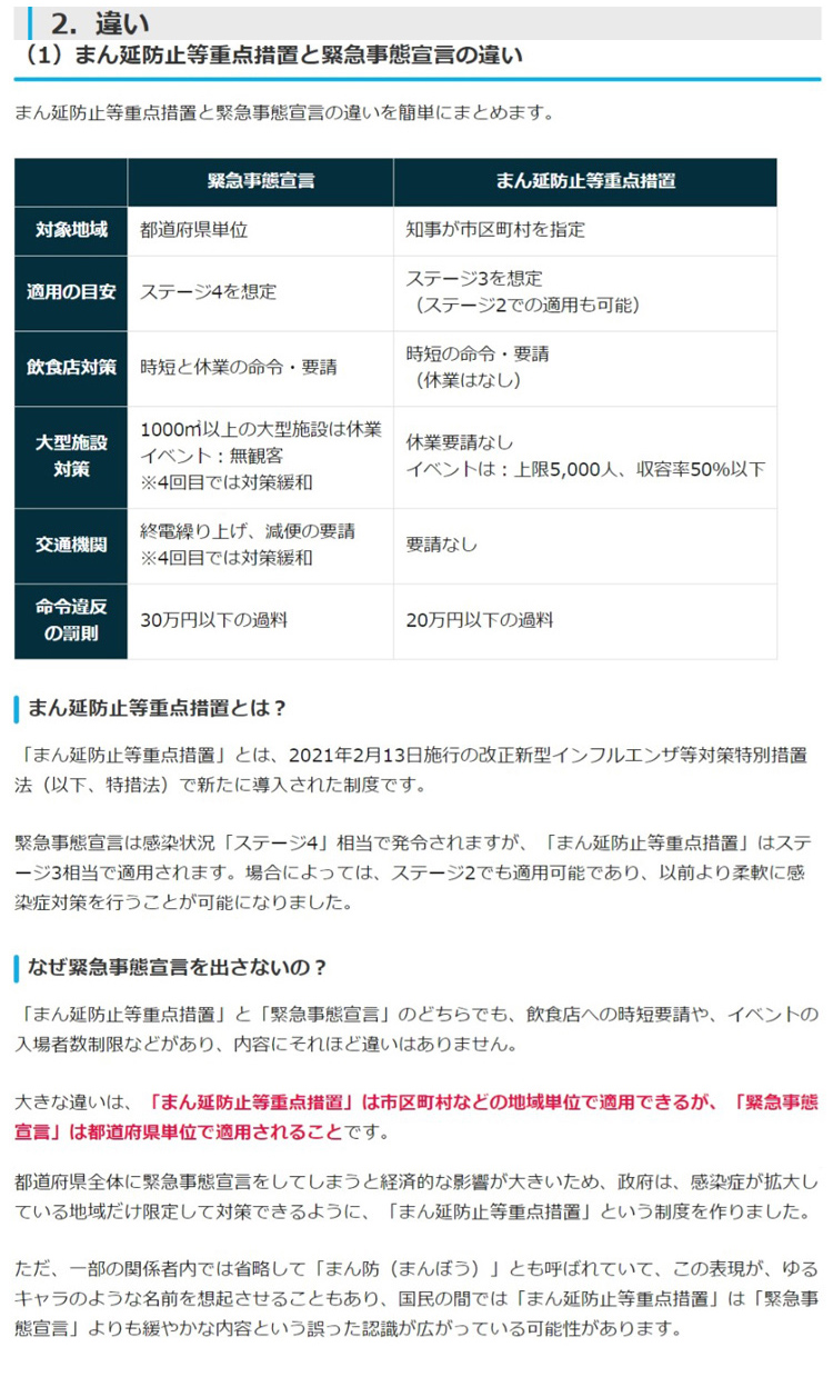 緊急事態宣言&まん延防止等重点措置について