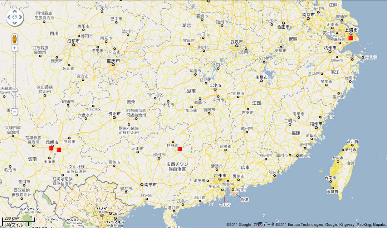 上海から昆明市経由で石林へ。ここでは、「天下の奇観」を観賞しその後中国茶を楽しんだ。昆明市に戻りマッサージで体調を整え、「99昆明世界園芸博覧会」を見学。