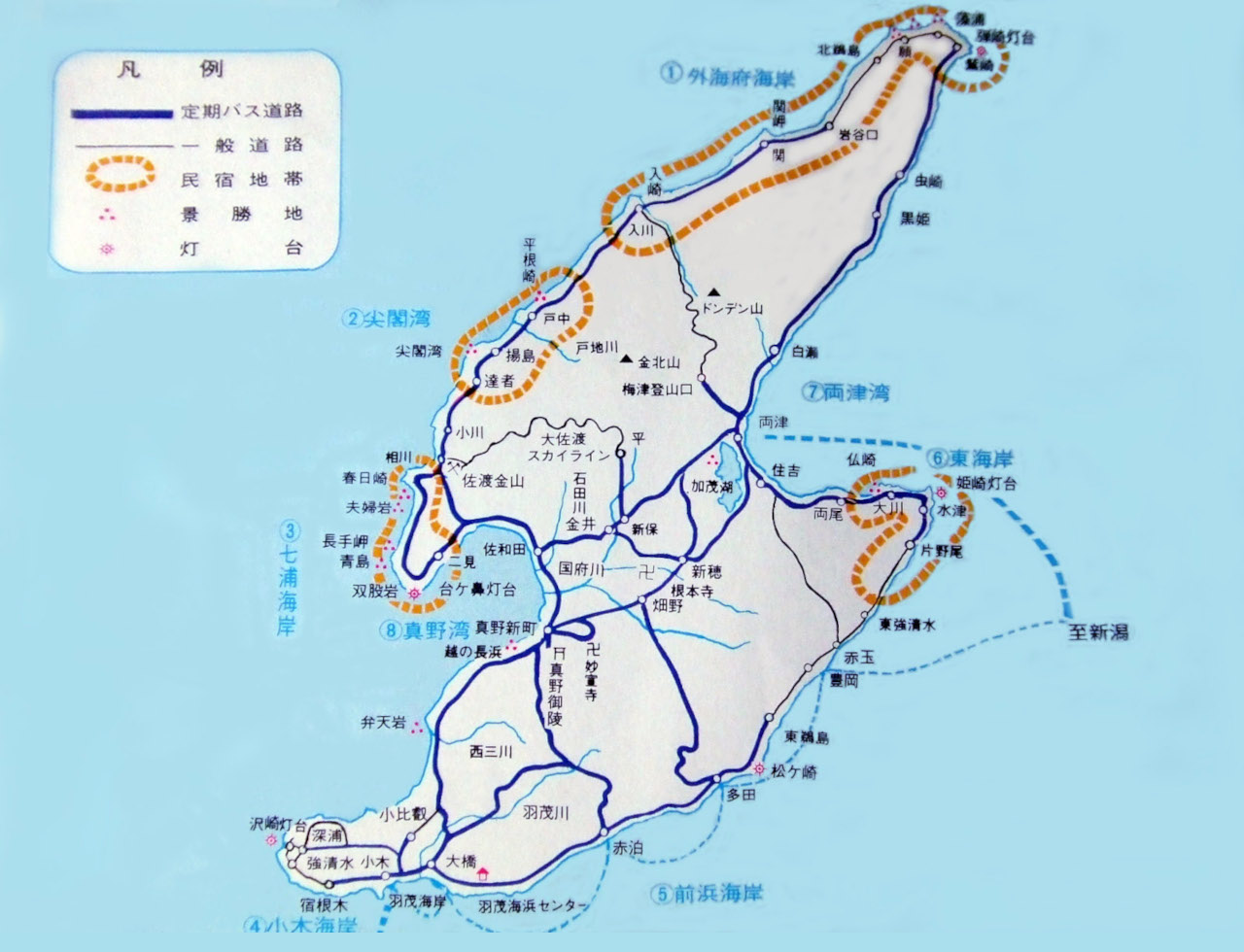4日目は、佐渡/両津へ移動。5日目に、ドンデン山・尖閣湾・春日埼などを観光。
