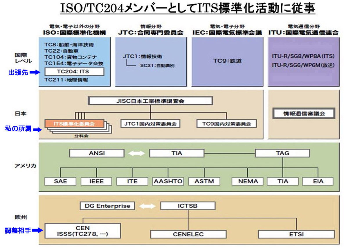 ・ISO/TC204の川嶋委員長からの指示で、私と他1名がEBU/TPEG-Forumに潜り込み投票前に日本案を欧州案ドラフトに織込む作戦を取った。 |