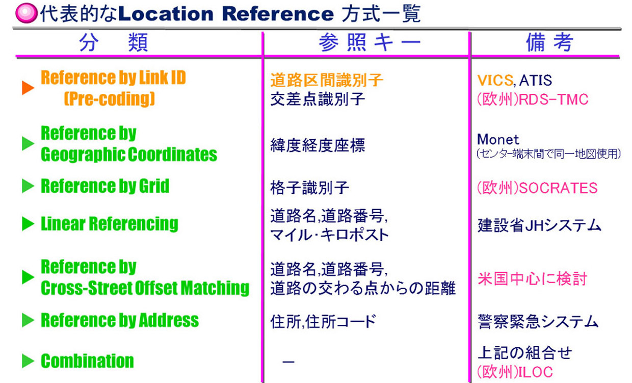 ・ISO/TC204/SWG3.3会員として「位置参照方式の標準化」活動を国内外で推進。 |