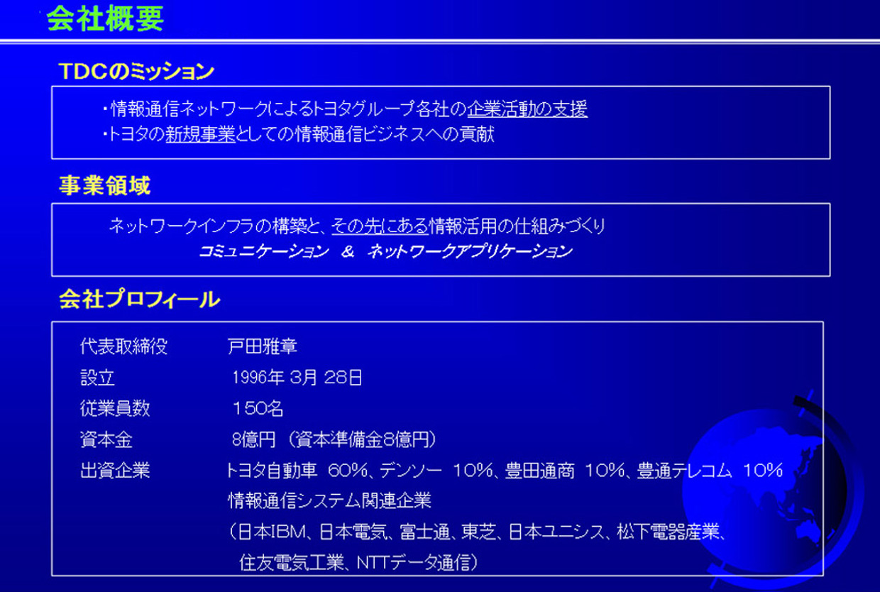 1997.1.24 ¥È¥è¥¿±üÅļÒĹ¤Ø¤ÎTDC»ö¶ÈÀâÌÀ²ñ TDCÀßΩ¤·Ìó°ìǯ·Ð²á¤·¡¢»ö¶È¼ÂÀÓ¤ä¾Íè¹½ÁۤˤĤ¤¤Æ¥Ò¥¢¥ê¥ó¥¯Äº¤¤¤¿¡£ | |||||