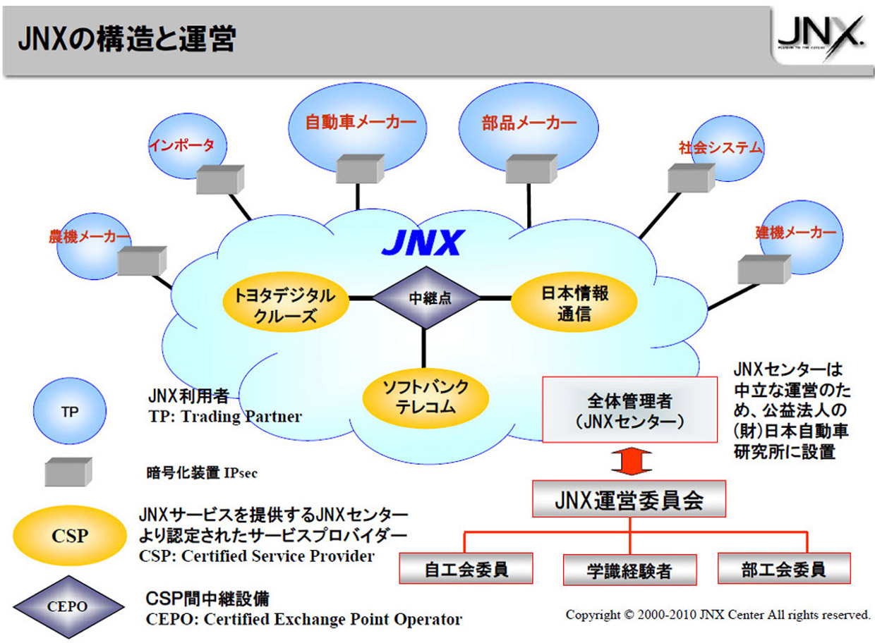 ¡¡JNX¤È¤Ï¡¢ÆüËܼ«Æ°¼Ö¹©¶È²ñ¤¬¿ä¤·¿Ê¤á¤ë¹ñÆâ¼«Æ°¼Ö¥á¡¼¥«³Æ¼Ò¤ÈÉôÉʥ᡼¥«³Æ¼Ò´ÖÅù¡¢¼«Æ°¼Ö»º¶È¤ò¤Ï¤¸¤á¤È¤¹¤ë»º¶È³¦¤ò¤Ä¤Ê¤°¶È³¦¶¦Ḁ̈ͥåȥ¥¯¤Ç¤¹¡£TDC¤ÏJNX¥µ¡¼¥Ó¥¹Ä󶡤Υץí¥Ð¥¤¥À¡¼(CSP¡§Certified Service Provider)¤È¤·¤ÆJNX¥»¥ó¥¿¡¼¤«¤é(ºÇ½é¤Ë)ǧÄꤵ¤ì¤¿¡£ | |||||
