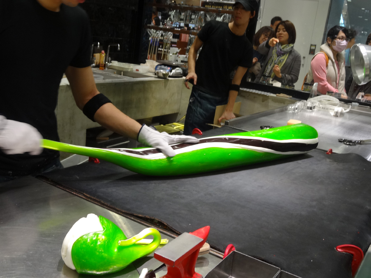 2013.04.16 アートキャンディの「パパブブレ」 第三弾 今回は、妻と一緒に見学し出来上がった"洋梨"に感激。 | ||||||