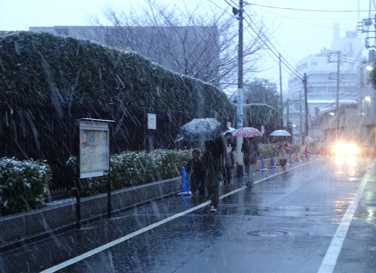 ISO/TC204国内会議を終えて自宅まで徒歩で帰宅。上空に強い寒気が流れ込んでいる影響で雪が降り出した。今夜の関東地域は積雪だろう。