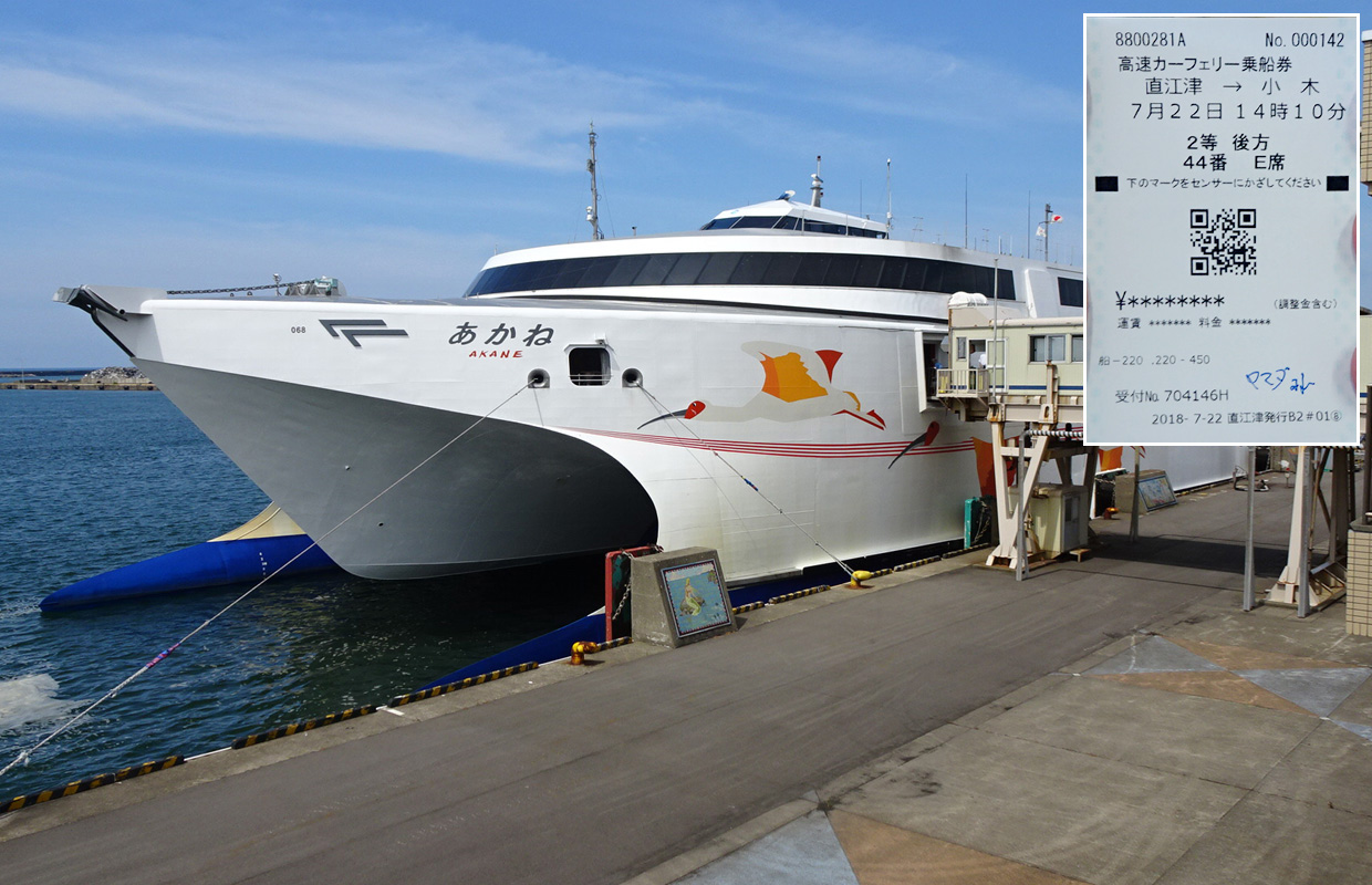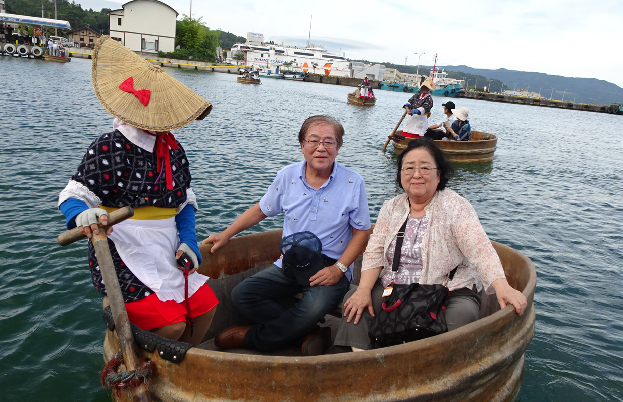 [07/22] 佐渡汽船高速船「あかね」で直江津港→小木港へ。まず佐渡名物「たらい舟」を体験。夜の花火大会も感激。