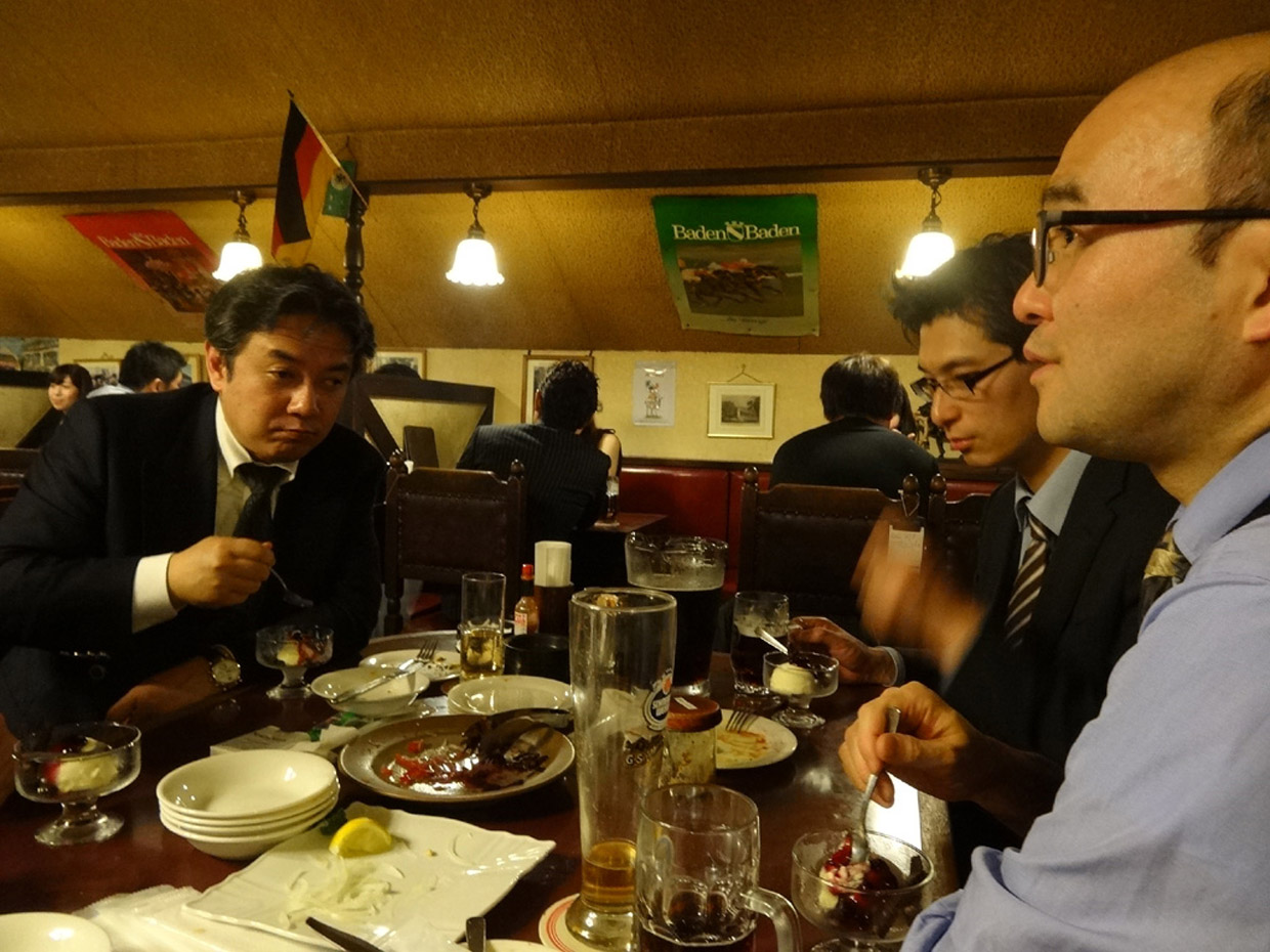 2013.04.02 VICSセンター新体制での親睦会 「次世代VICSシステム」の事業化を担当している我々は全員が新設された調査研究部へ異動し、これからも頑張ろうと意識確認をしました。有楽町「バーデンバーデン」のドイツ料理が美味しくドイツへ出張した時代を思い出しました。 | |||||
