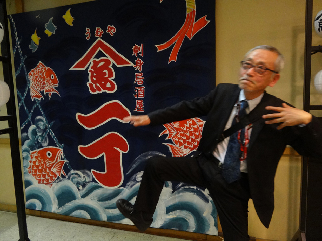 2013.04.04 明大オケOBの井口君と懇談 銀座「魚や一丁.本店」で会食しました。先日、膝の怪我で「駅からハイキング」を途中棄権したことを詫びました。 | |||||