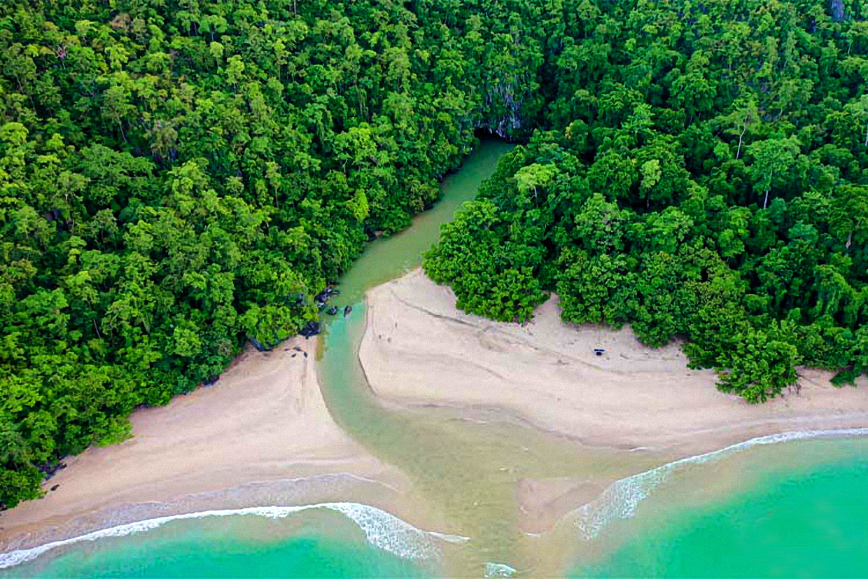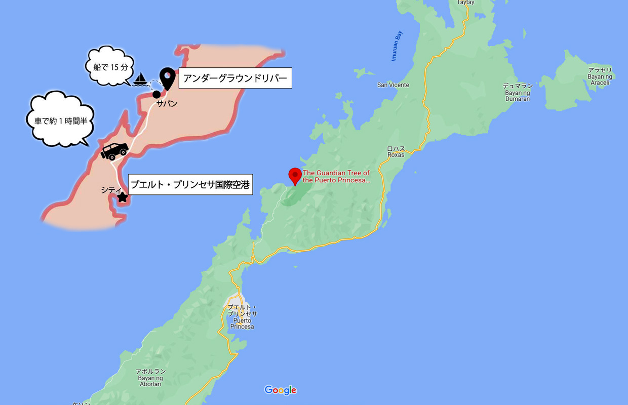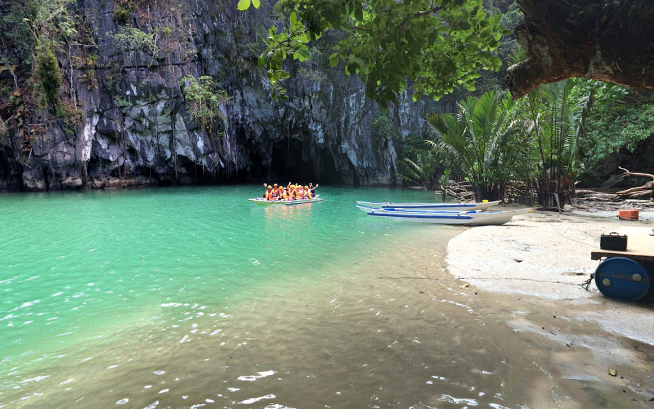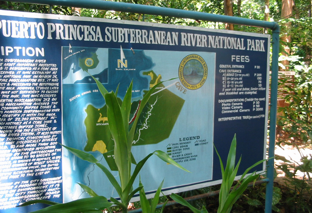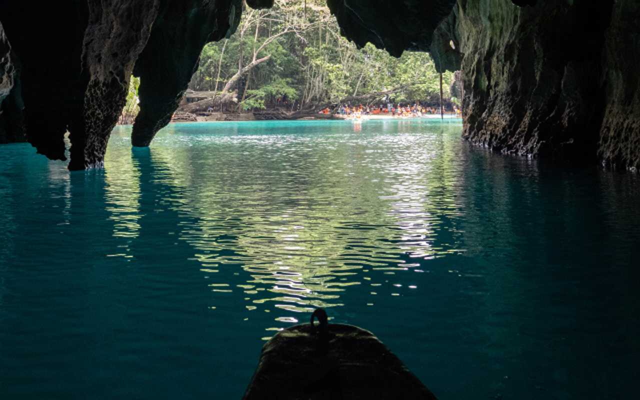 世界遺産のUndergrand River。川は河口から8キロ上流で鍾乳洞に入り地底を流れる。 | ||||||