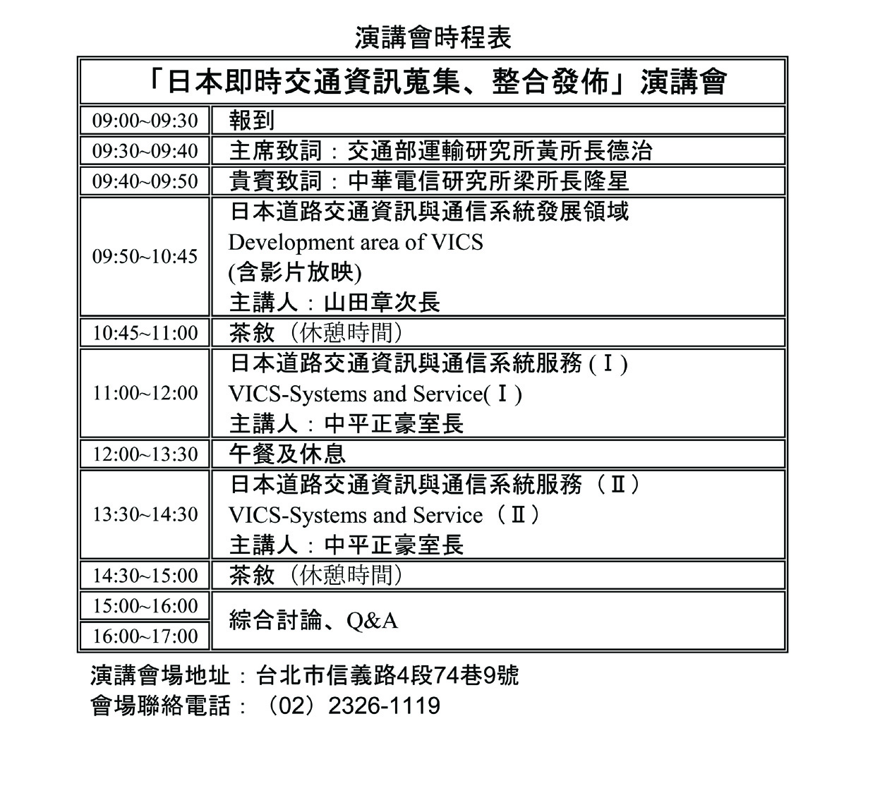 台湾政府組織/電信総局や運輸研究所、地方自治体/台北市政府、大学教授など関係者に、道路交通情報システムのあるべき姿や留意点、日本で培ったノウハウを提供した。