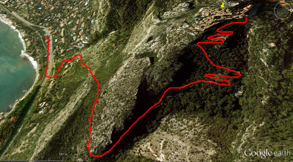 [ 〃 ] エズの村からニーチェの道下山は、道が急で観光客ゼロでしかも道がきつく靴が壊れた。 | |||||