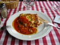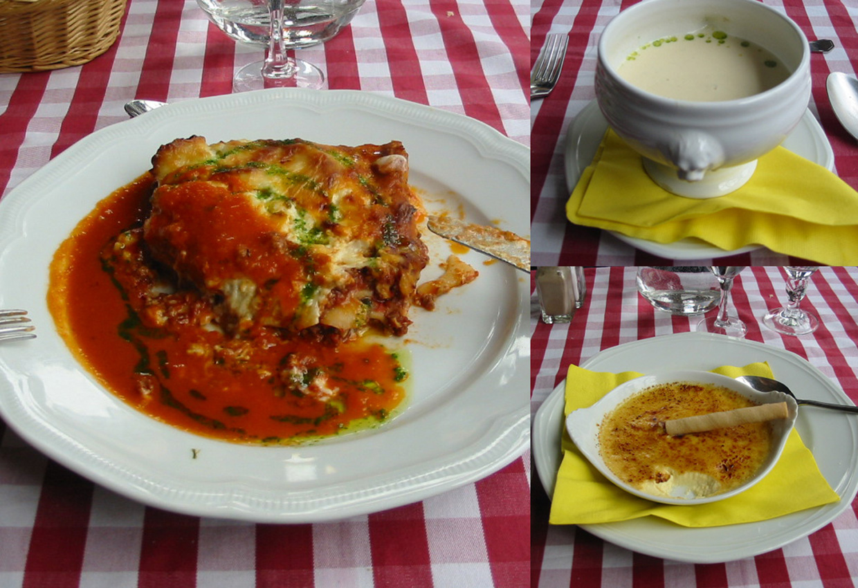 一人寂しくしていたら女性がシャッター押してくれた。凍えた身体にラザニアは最高!